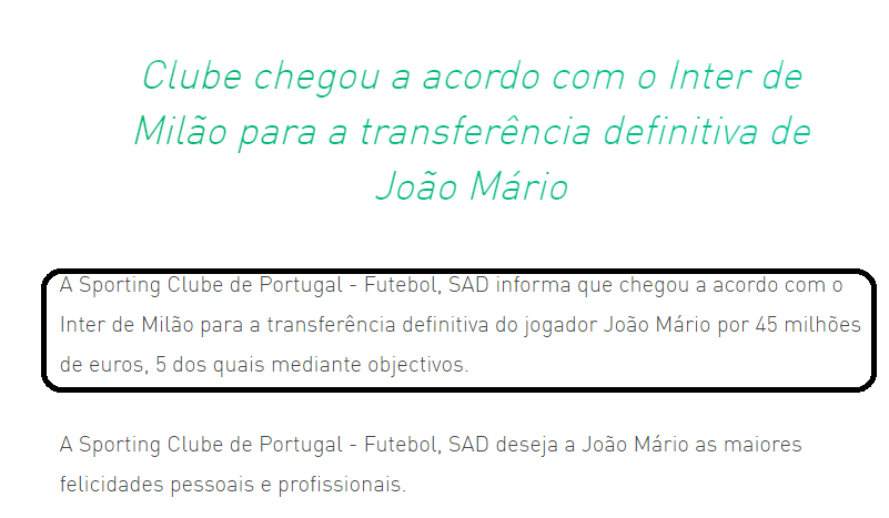 Muito bem, bom tema, se foi bom negócio ou mau negócio, espero o que o nosso presidente vai dizer, sobre a venda do João Mário, depois podemos tirar conclusões mais certas.
