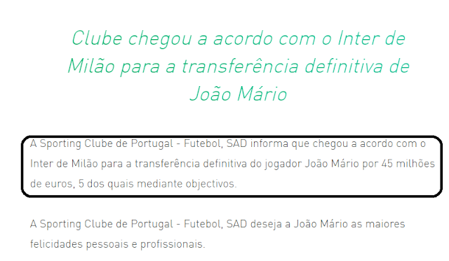 Fica hoje claro, que não houve precipitação na venda de JM. Precipitação é lá para os lados de carnide, onde falha a luz e os sistemas de rega são manuais. Não houve precipitação no negócio da venda de direitos televisivos, ao contrário do rival que assinou de cruz e veio o respectivo foguetório depois do Sporting assinar o seu contrato. Seja como for, ficou claro, que o Man United queria o jovem jogador da luz e que houve precipitação na venda ao B.Munique, não permitindo a disputa dos clubes pelo jogador e pior, não permitir a sua valorização no Europeu antes da sua venda. Hoje vendiam por 50 M, limpinho, Limpinho. João Mário foi vendido após ser Campeão Europeu, a 4 dias do fecho do período de transferências, mantendo em aberto tanto o clube interessado bem como um eventual interesse de outros clubes pelo jogador Boa BC.